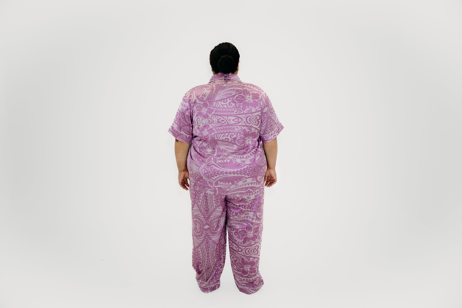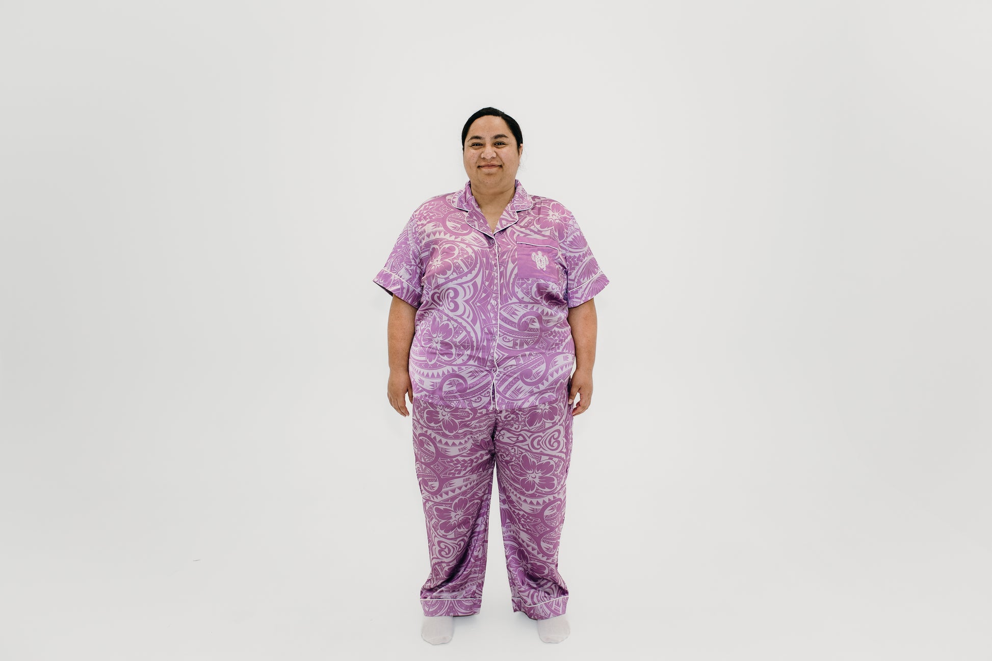 Experience luxurious comfort with our violet culture satin short sleeve pj set. Crafted from smooth, lightweight satin, this set offers a silky feel that enhances relaxation and sleep quality.